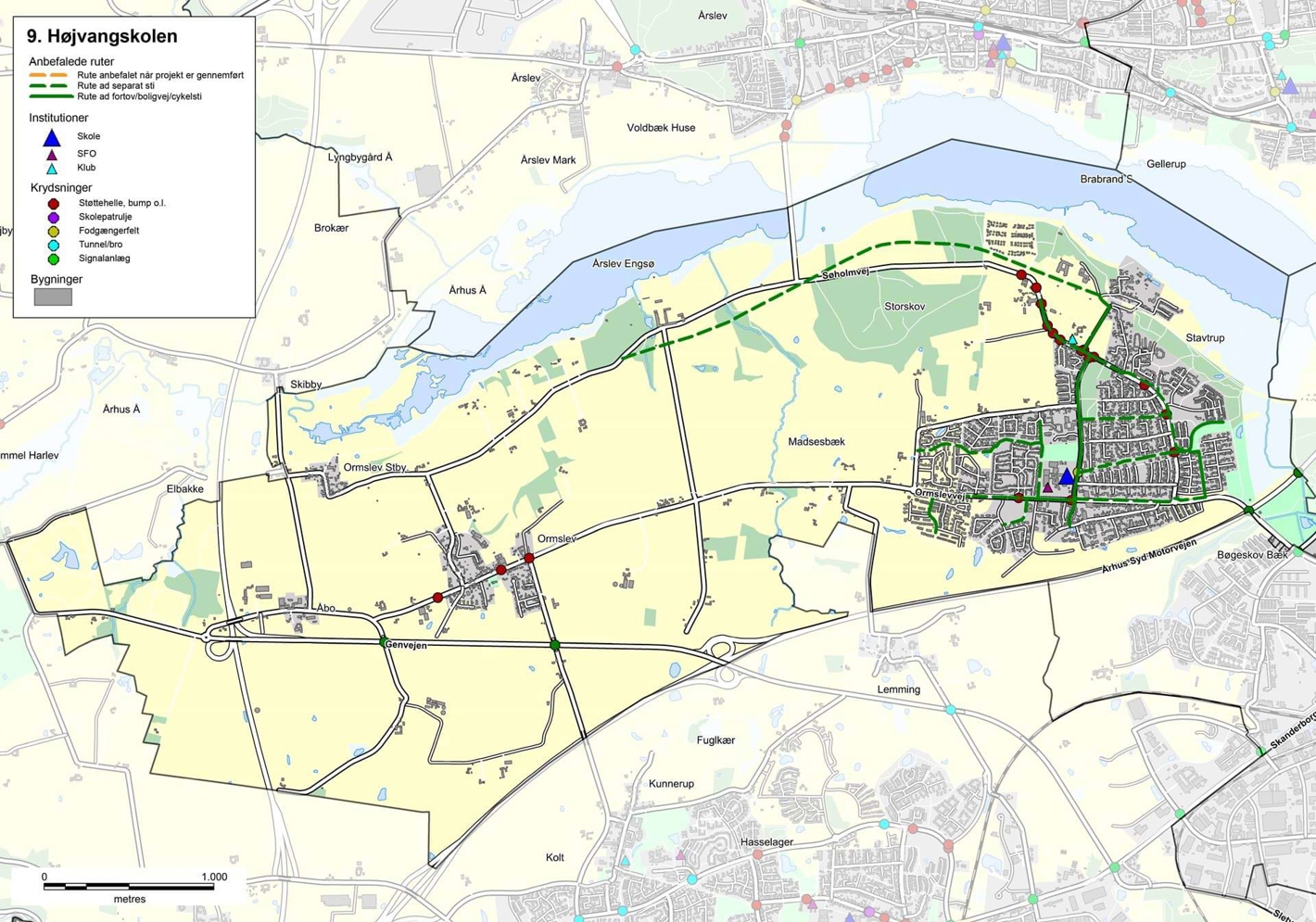 På kortet viser vi de skoleveje, som vi anbefaler til børnene. Husk: Øvelse gør mester, og det er en god ide, at du øver skolevejen sammen med dit barn.